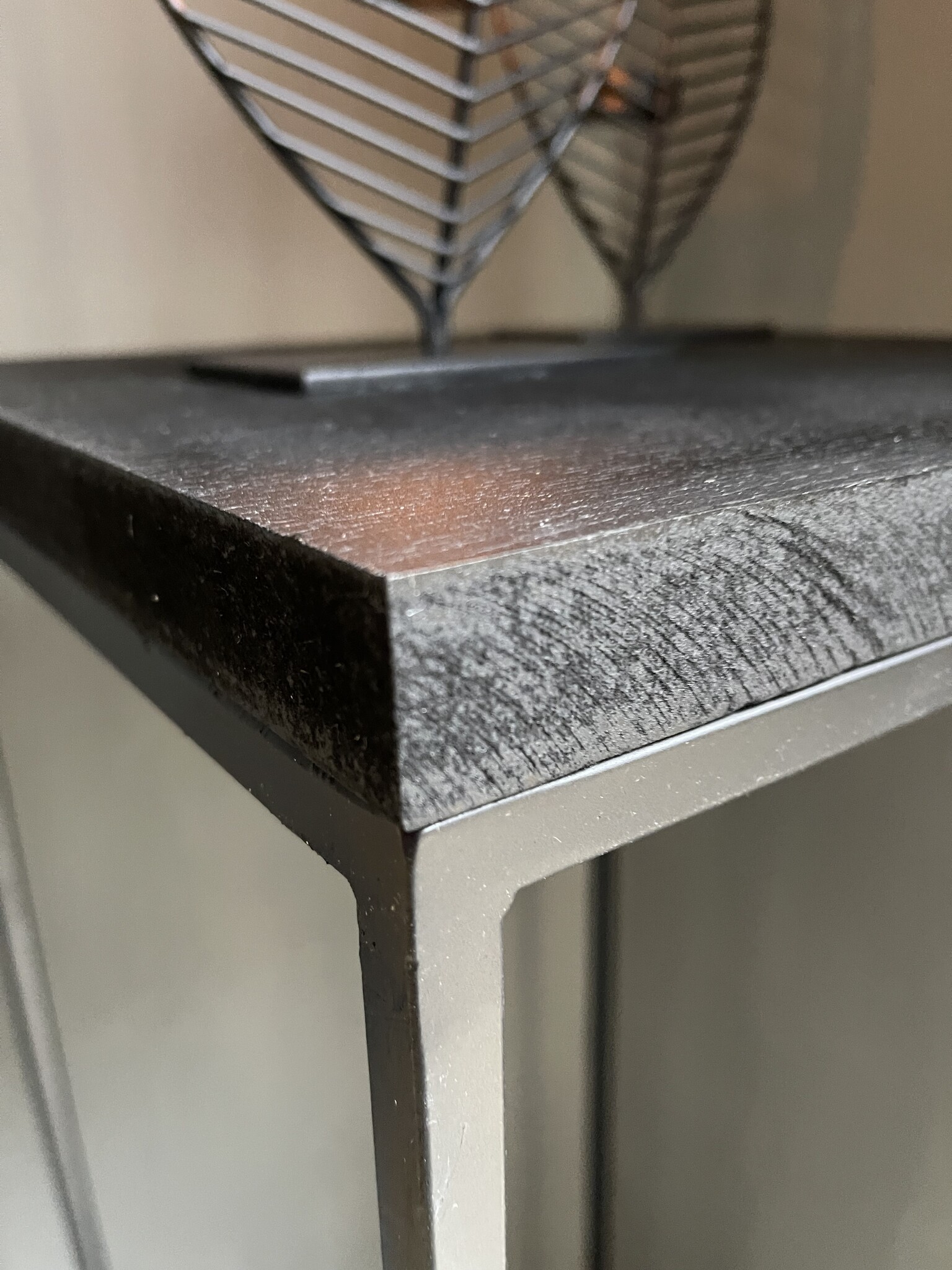 Zuil zwart met houten boven blad
